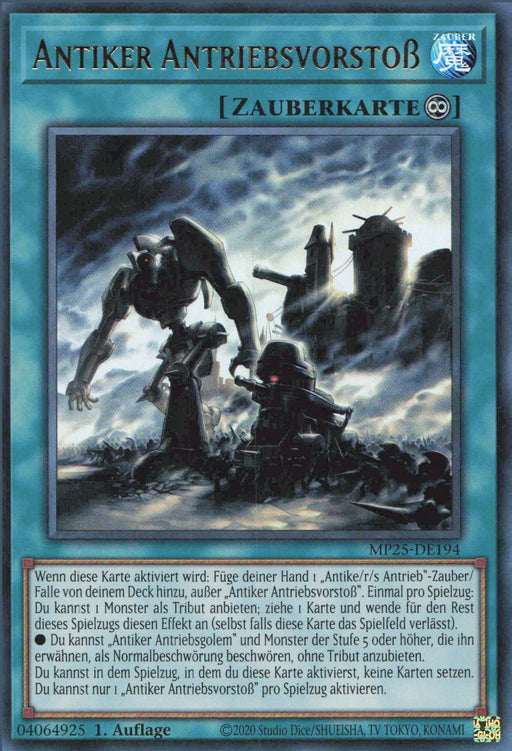 Antiker Antriebsvorstoß / Ancient Gear Advance Erweiterung: 2025 Mega-Pack TinSeltenheit: Ultra RareSprache: Deutsch