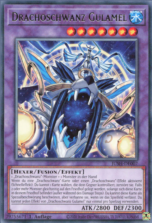 Drachoschwanz Gulamel / Dracotail Gulamel Erweiterung: Justice HuntersSeltenheit: Super RareSprache: Deutsch