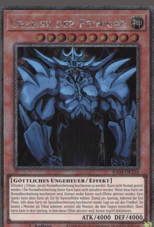 Obelisk der Peiniger / Obelisk the Tormentor Erweiterung: Quarter Century StampedeSeltenheit: Platinum Secret RareSprache: Deutsch