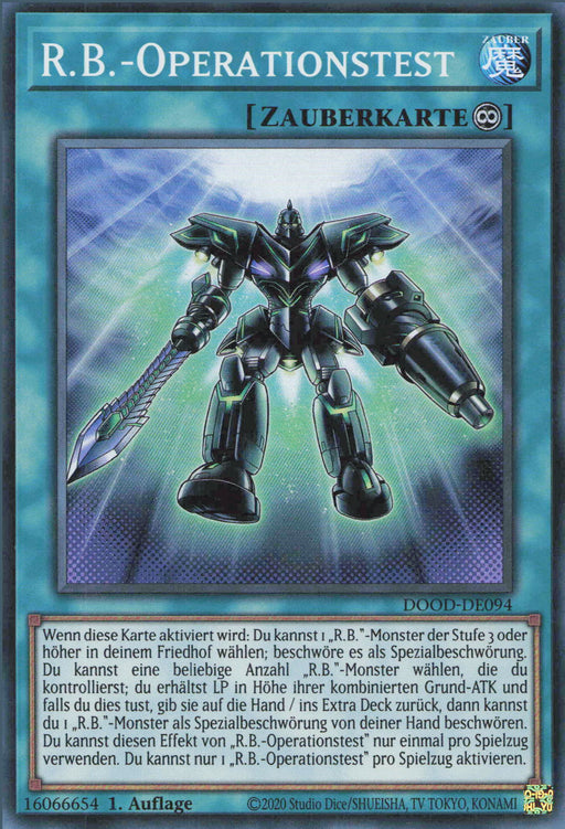 R.B.-Operationstest / R.B. Operation Test Erweiterung: Doom of DimensionsSeltenheit: Super RareSprache: Deutsch