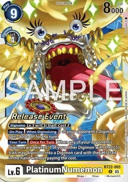 PlatinumNumemon (BT22-065) / PlatinumNumemon (BT22-065) Erweiterung: Promos: Cyber EdenSeltenheit: Alternative ArtSprache: Englisch